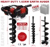 49cc PETROL POST HOLE DIGGER with CE&GS certificate Features & Benefits: 2-stroke, air-cooled engine Throttle control unit built into the handle Comfortable handle and palm grip Includes 100mm/ 150mm/ 200mm auger drills FREE fuel mixing bottle 49CC displacement 1.65KW power output 1.2 litre fuel tank capacity CE / GS certified No separate power supply required This heavy duty portable earth auger is ideal for drilling holes with a 2 stroke air-cooled engine. It also comes with 3 separate auger drills (100mm / 150mm/ 200mm) and Throttle Control Unit built into the handle. Every purchase also comes with Fuel Mixing Bottle absolutely FREE. Key FeaturesEngine model1E44F-5Engine type2-strokeCooling systemAir cooledDisplacement49CC2-cycle oil/gasoline mixing ratio1:25IgnitionCDIPower1.65KWCarburetterDiaphragm typeFuel tank capacity1.2 litreStarter systemRecoil startRecommended oilSAE 80-90 gear oilApprovalCE / GS certifiedPackage ContentsBrand New Earth Auger Unit 100mm / 150mm / 200mm Auger Drills FREE Fuel Mixing Bottle Tool Kit Operation ManualDimensions & WeightsAuger Control Unit Dimension600mm(l) x 350mm(w) x 250mm(h)Auger Drill Dimensions760mm(l) x 100mm(d) 760mm(l) x 150mm(d) 760mm(l) x 200mm(d)Package Dimension (Box 1)620mm(l) x 400mm(w) x 300mm(h) NW: 9.3kg / GW: 10.7kgPackage Dimension (Box 2)780mm(l) x 115mm(w) x 115mm(h) NW: 3.2kg / GW: 4.0kgPackage Dimension (Box 3)780mm(l) x 170mm(w) x 170mm(h) NW: 3.8kg / GW: 4.6kgPackage Dimension (Box 4)780mm(l) x 215mm(w) x 215mm(h) NW: 4.6kg / GW: 5.2kgFuel Mixing Bottle165mm(l) x 83mm(w) x 180mm(h)
